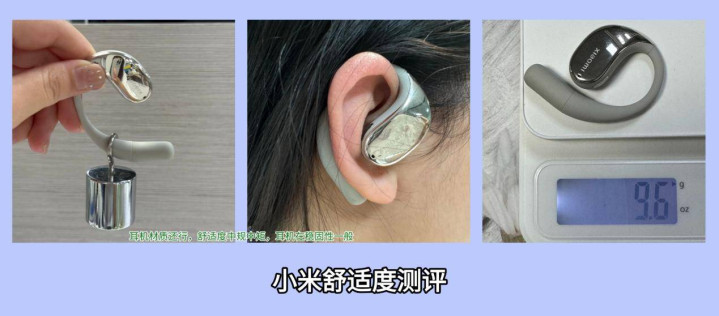 耳机采用了分体式挂耳设计,整体重量仅为10克,使得长时间佩戴不会造成明显负担,尤其适合运动佩戴。耳挂部分选用了柔软的材质,能够有效减少耳朵前侧的压迫感,提高佩戴的稳定性。然而,在长时间使用后,耳挂部分可能会产生轻微的疲劳感,尤其是对于长时间佩戴需求较高的用户,舒适度仍有一定提升空间。